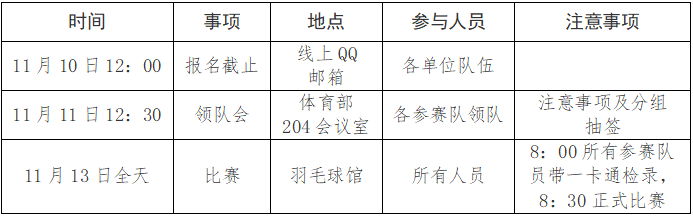 二、比赛地点:羽毛球馆