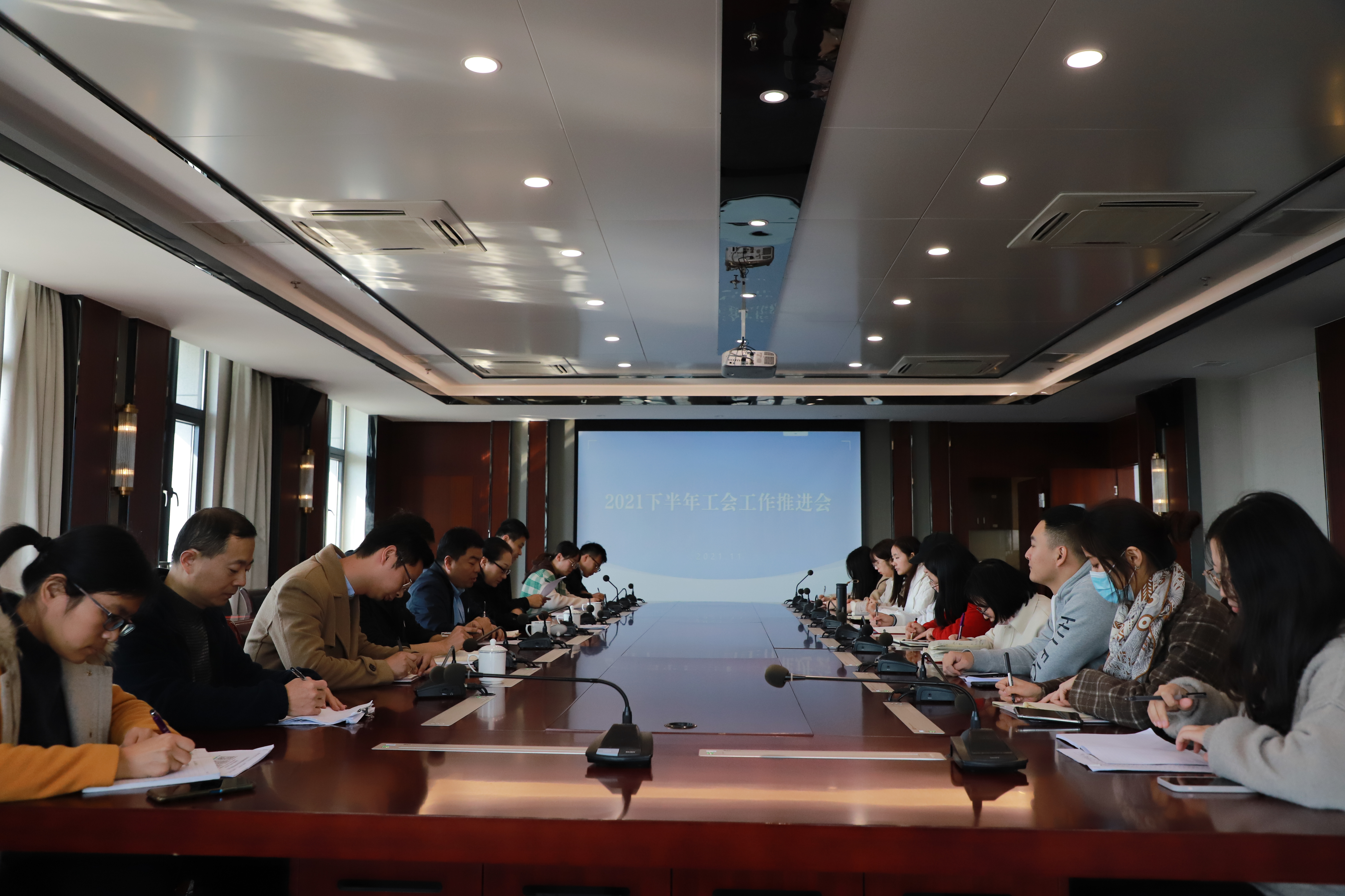 11月11日上午,我院召开2021年下半年工会工作推进会,副院长梁惠娥、滨江学院分工会全体成员及各学院工会联络人出席会议。