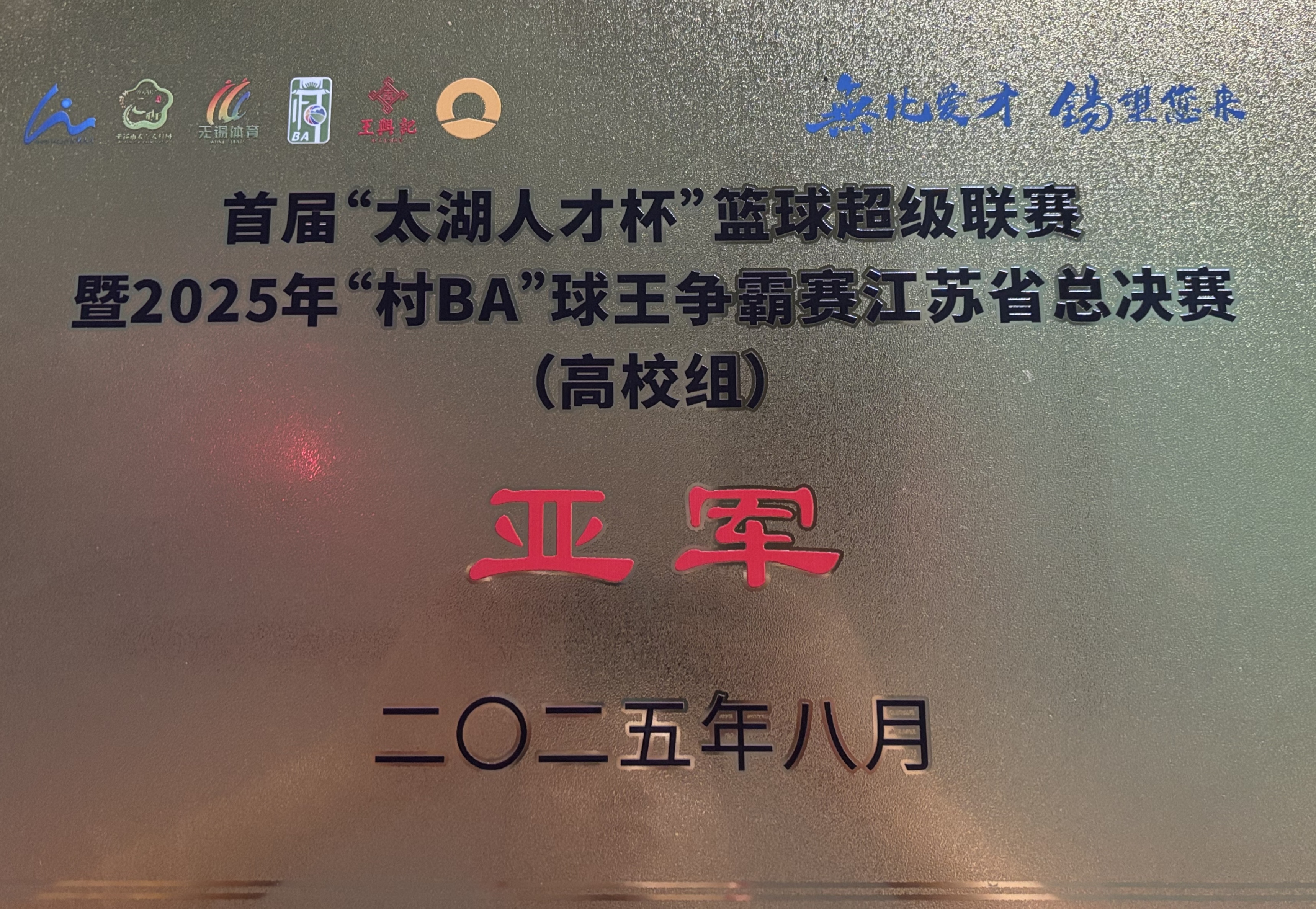 8月20日,首届“太湖人才杯”篮球超级联赛暨2025年“村BA”球王争霸赛江苏省总决赛(高校组)在无锡玉泉公园篮球场圆满落幕。我校教职工篮球队代表学校参赛并荣获亚军。